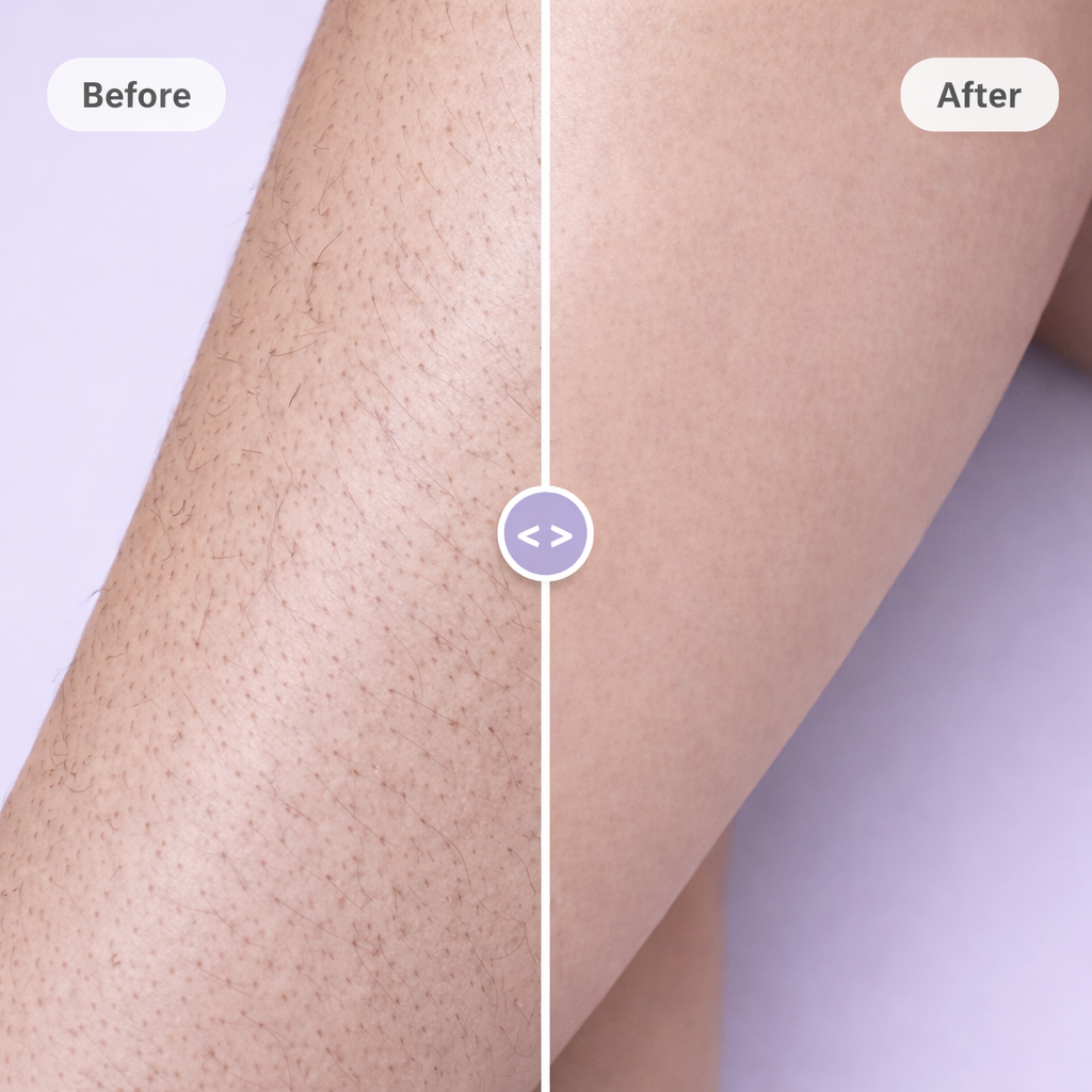 Velora uses gentle IPL (Intense Pulsed Light) technology to target hair follicles beneath the skin. With consistent use over time, this helps reduce regrowth and maintain smoother skin.